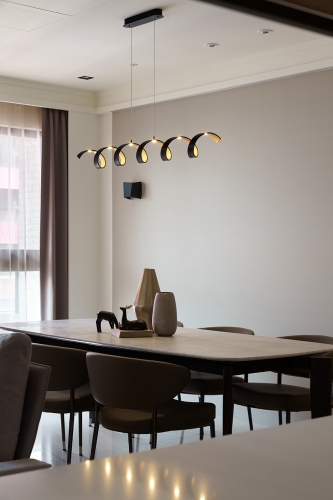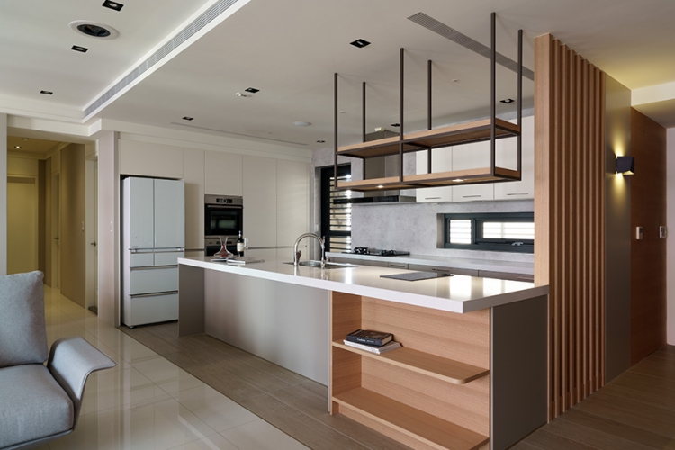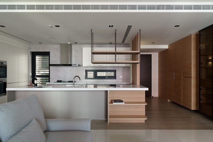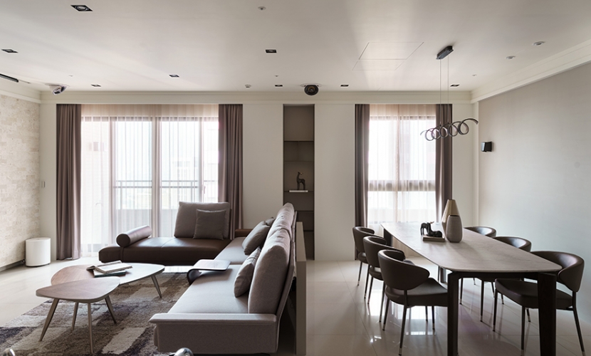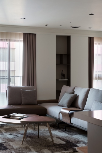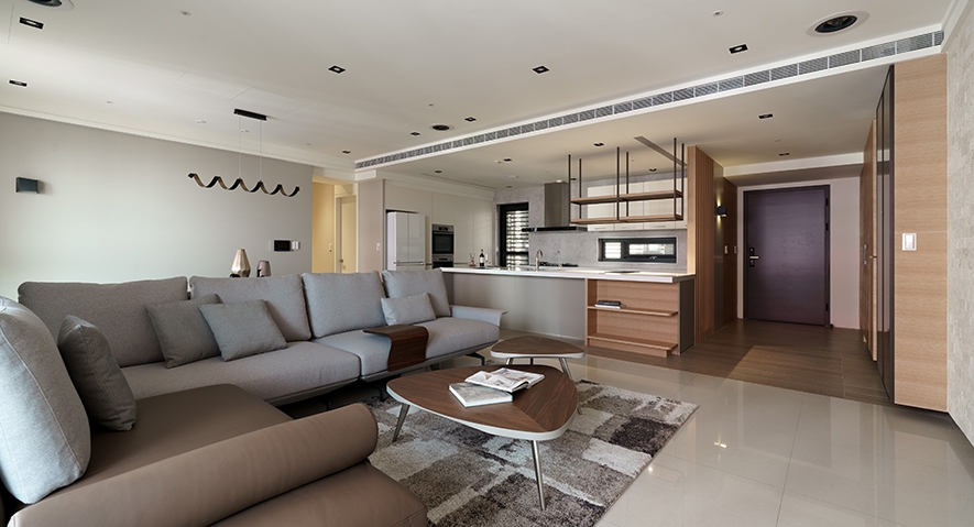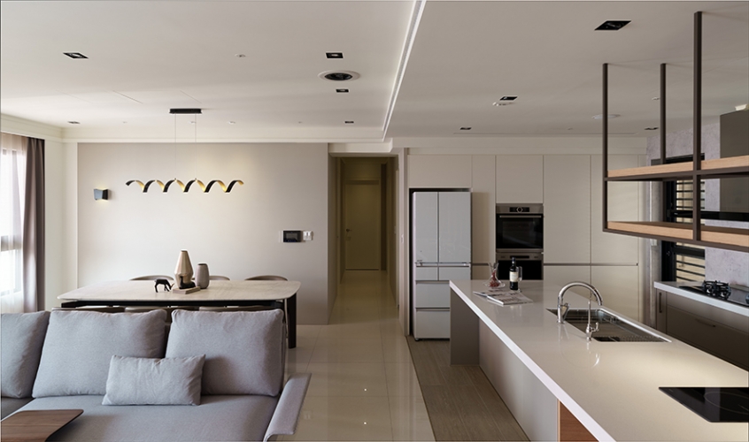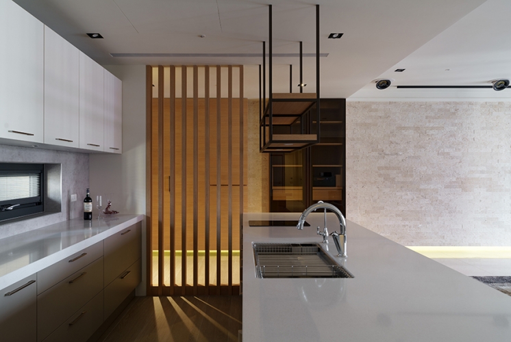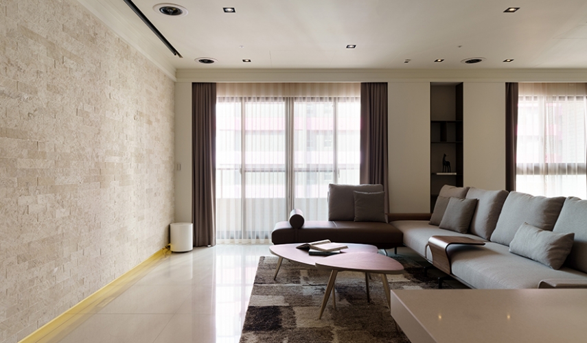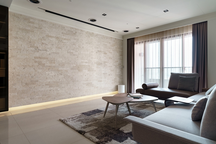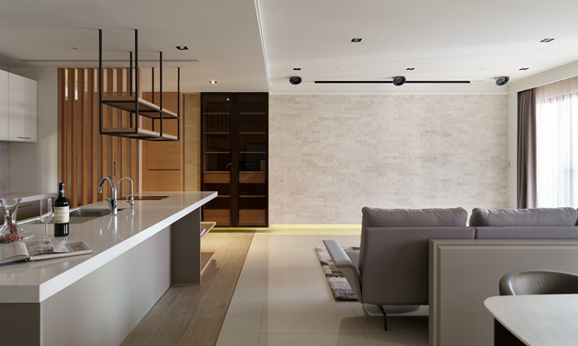 業主因工作類別需要相當的專注力,回到家希望營造是放鬆、舒適無壓力的氣圍,得以釋放工作狀態時的壓力。設計上我們回歸居住的本質,將繁複的設計,精簡出生活的簡單純粹,除了簡約,仍想要給業主溫暖的生活感,因此加入了洞石的天然質地。我們為喜愛下廚的女主人規劃開放互動型態的廚房動線,使家人間互動交流能暢然自在。