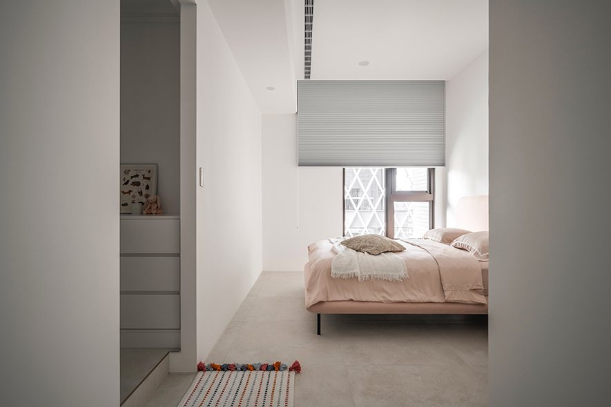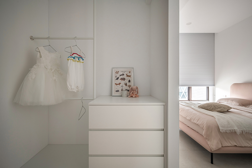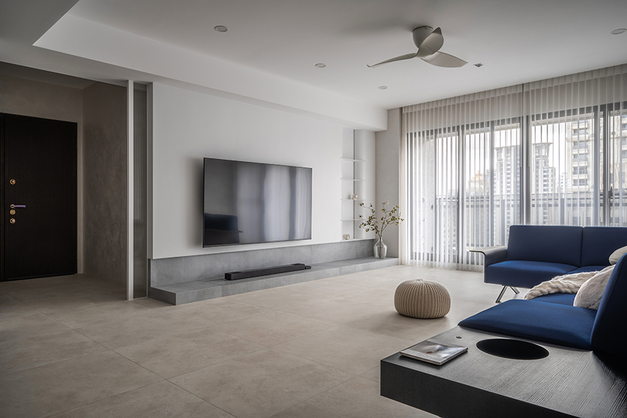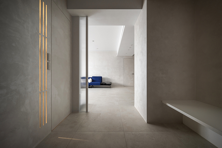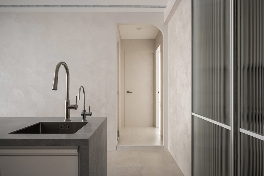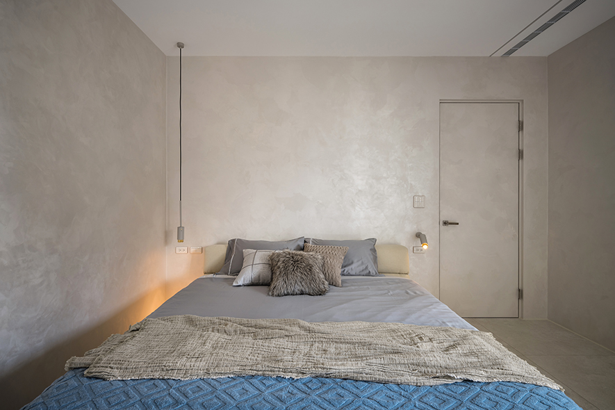 業主以「度假宅」為主要訴求,希望能在休閒之時尋一靜謐之處,讓平日身處繁忙的男女主人忘卻工作中的疲憊,於是汲取兩人喜愛的中性色系,以「化繁為簡」將舒適度放到最大,拆除隔間引入光線,並將機能整合於立面,創造開闊視覺,放眼望去心曠神怡,在這處清淺溫潤的度假宅邸,實現五口之家的美好光景。
