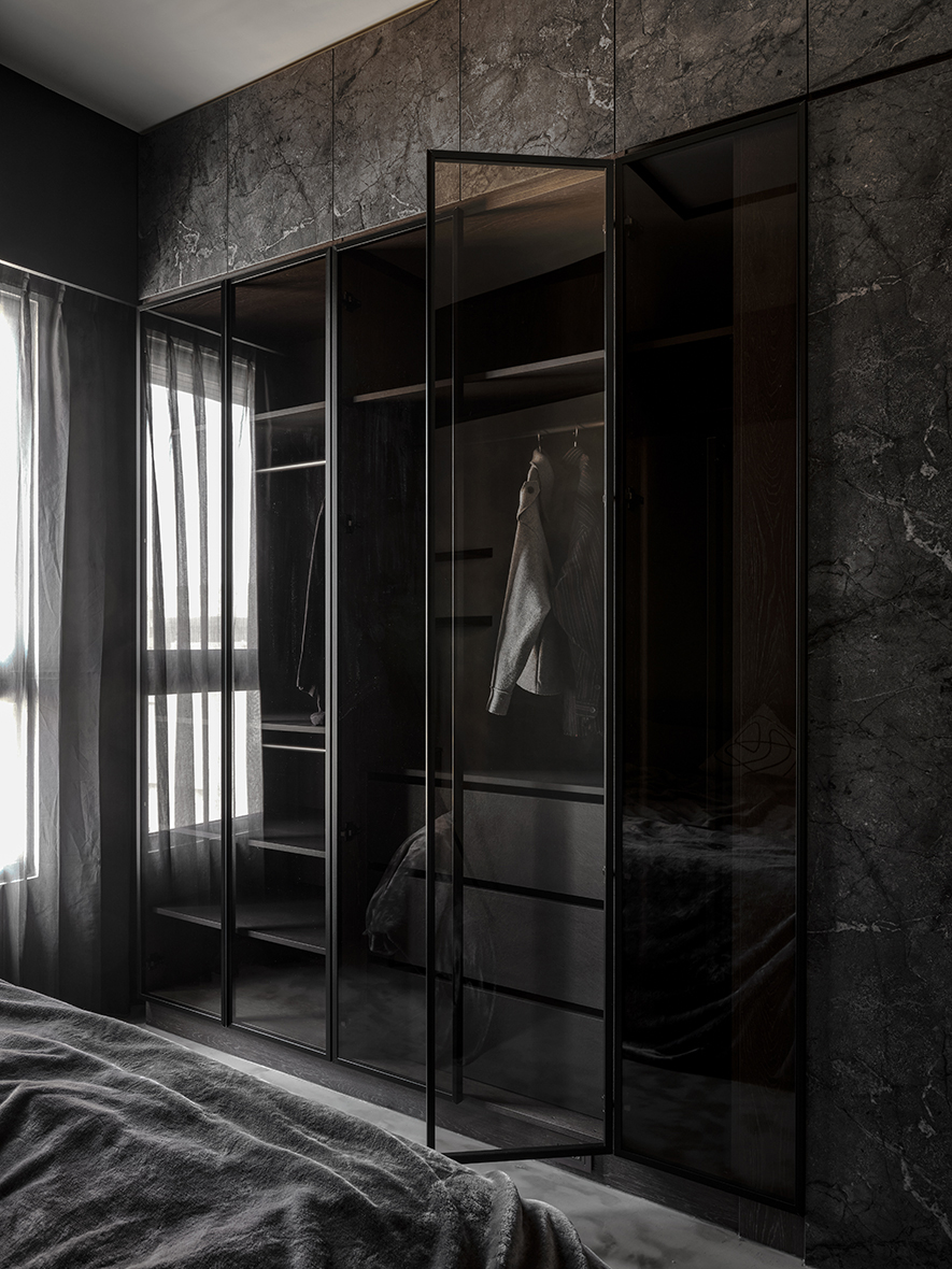 朝霞與夕輝自窗外流入室內,在散逸沉謐語彙的深色公區投射光影,化作多變的自然藝術動景。踏進廳堂,映入眼簾的是純淨的黑、白、灰,綴點流雲似的石紋,流露寧靜自在氛圍,無論於此處獨坐靜閱,或邀友共飲,皆可享受輕鬆愉快的時光。