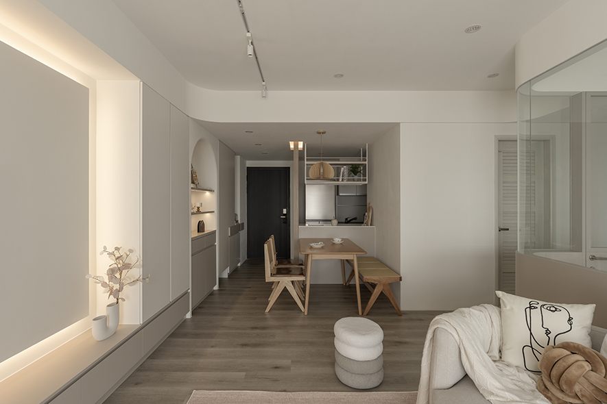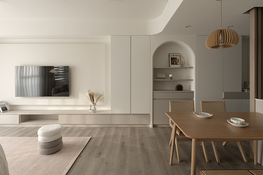 乳膠漆/系統櫃/PP板/鐵件/曲面玻璃/超耐磨木地板