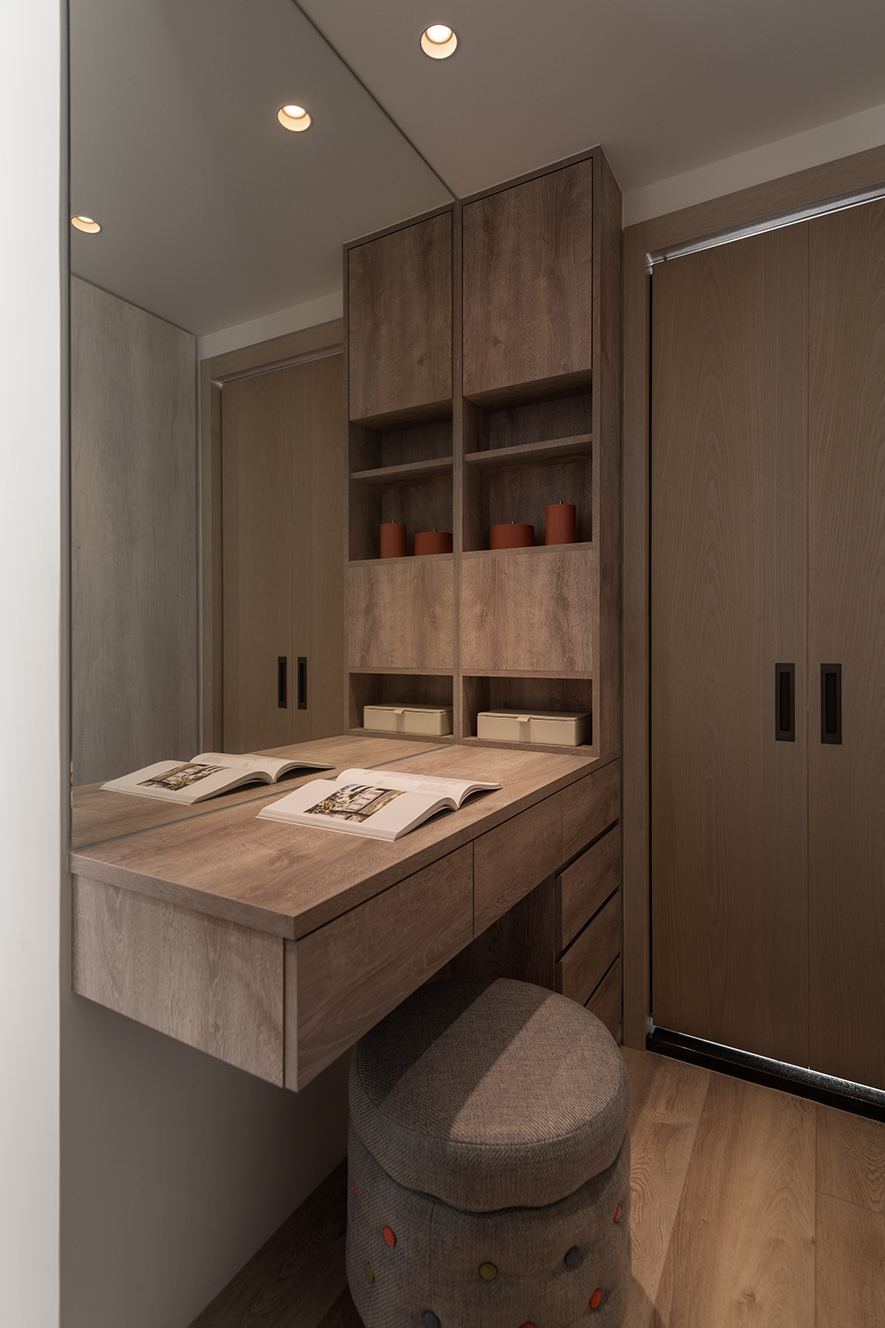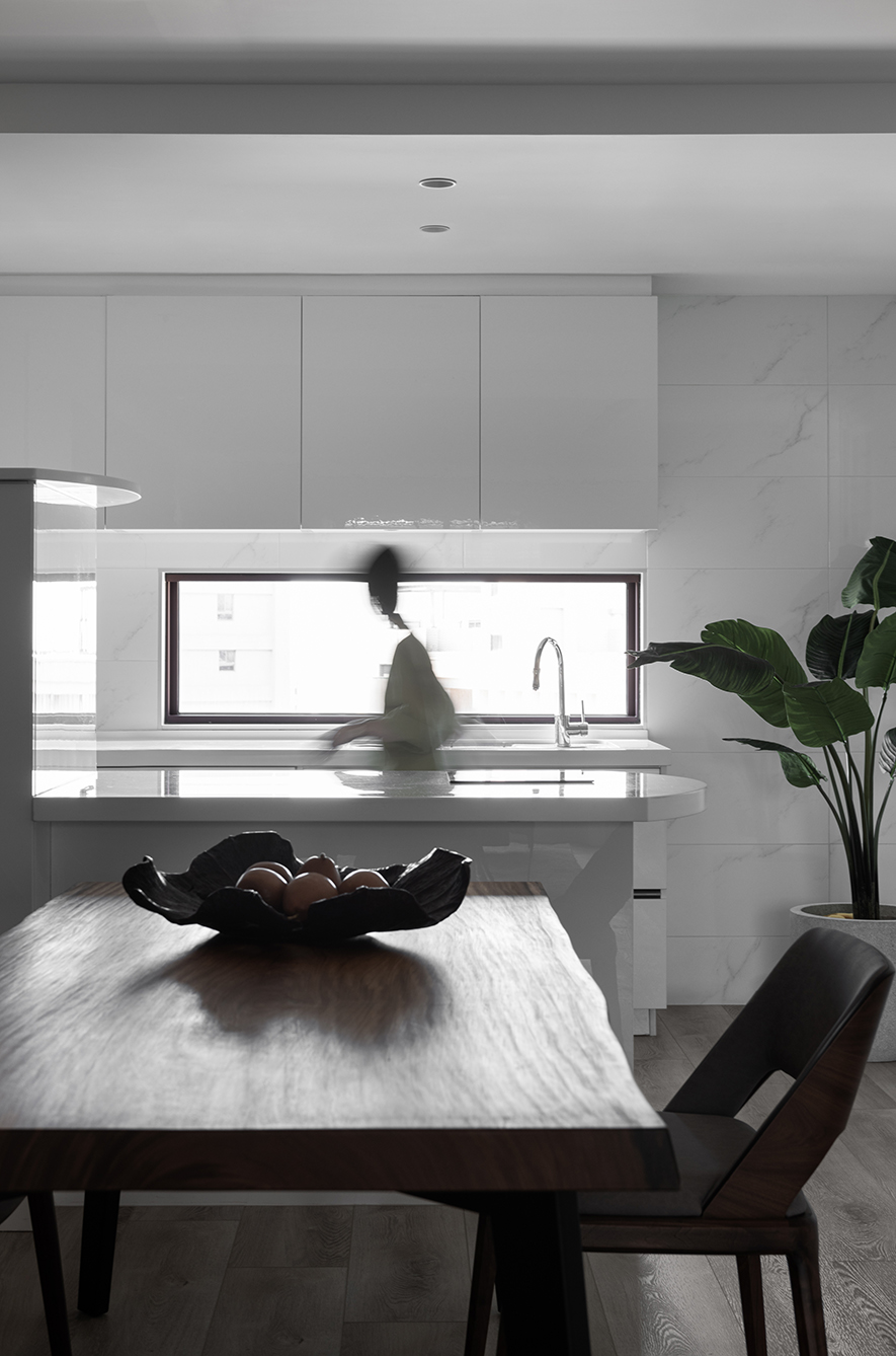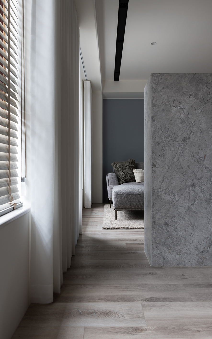 晨暉夕照透過窗葉間縫傾流入內,形成輕淺或穠麗的朦朧濾鏡,萬花筒般幻化滿室影彩。業主迎朝而出,踏著晚霞歸返,隨入室的步伐一寸寸褪去喧囂外塵、繁忙一日的疲憊,沉浸於愜意的私人時光,與家人相聚歡笑,共創永不褪色的天倫記憶。