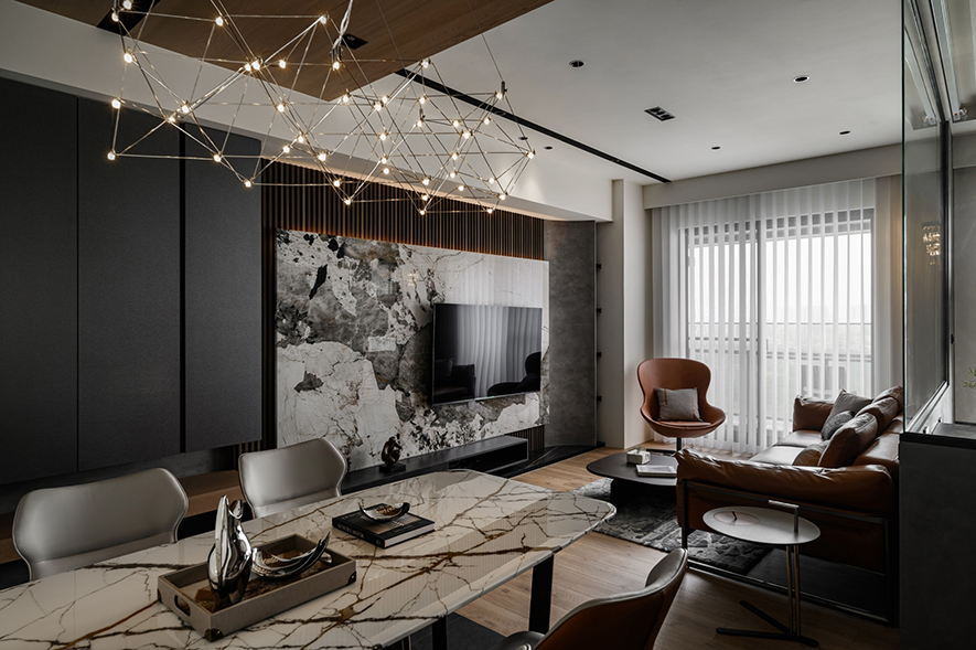 秉持「為客戶建構健康永續居所」的設計核心,團隊將可持續性的健康室內環境列為首要考量項目,於此案全室選用高效節能的LED燈具、家電設備,以及可循環再生的環保綠裝修、綠建材,徹底落實減少能源耗損、友善生態的公司理念,輔以精準規劃的開放式場域通道,賦予屋中優良的自然通風採光,令屋件的空氣品質、光環境、聲環境、溫熱環境等健康環境因子皆為最高等級,成就安全無毒、舒適宜人的永續住宅。