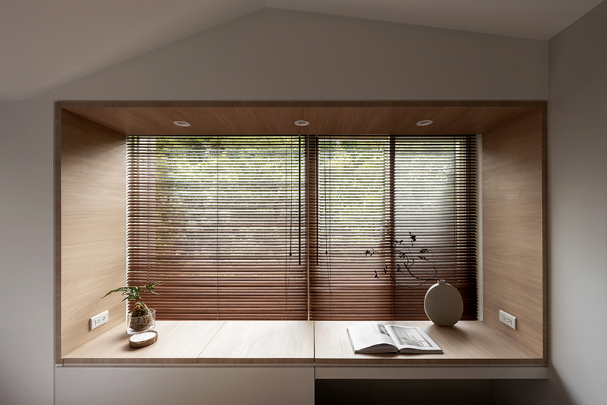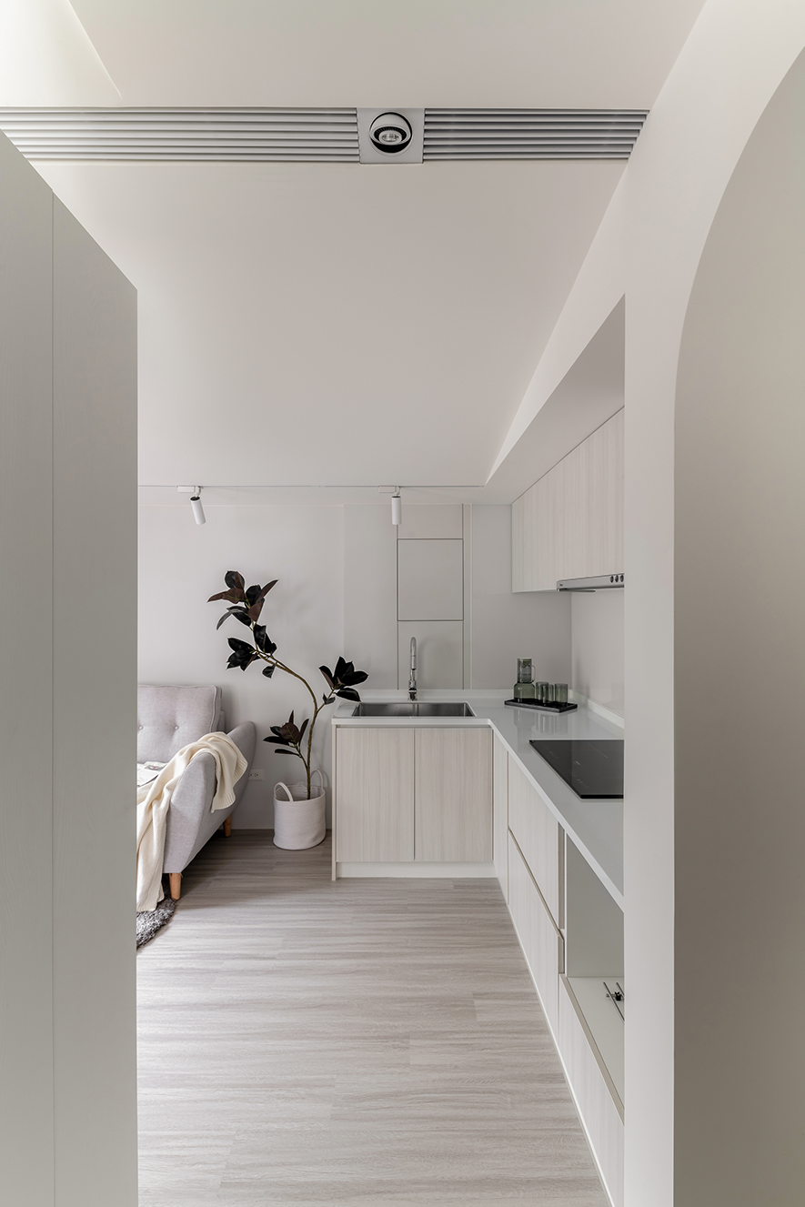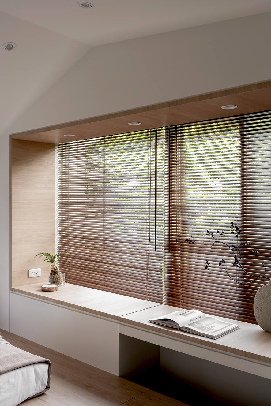 簡約淨白、柔潤木紋,共同鋪敘一處純淨天地,隔絕塵世喧囂、沉澱紛亂思緒,引人愜享清幽時光,猶如其名《小滿》──早稻結穗,穀實逐漸飽滿、隨風搖曳的時節,是恰到好處的恬逸。