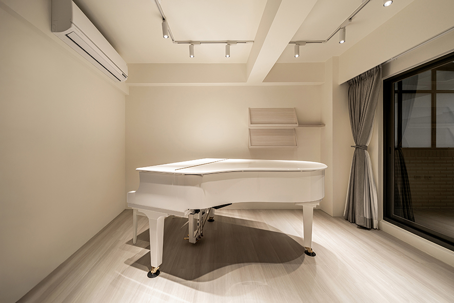 屋主太太崇尚身心平衡,女兒則展現鮮明個性,因此規劃了兩間風格各異的專屬琴房,黑白鋼琴各自成章,展現個人品味。