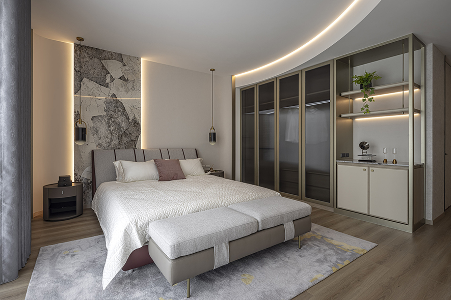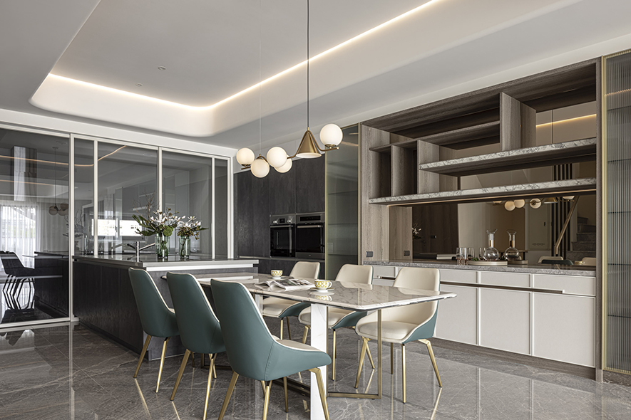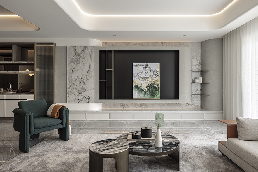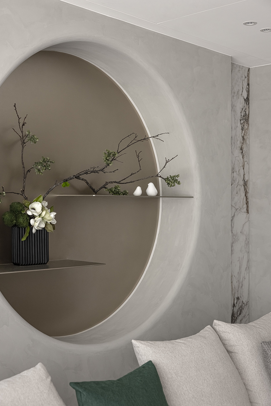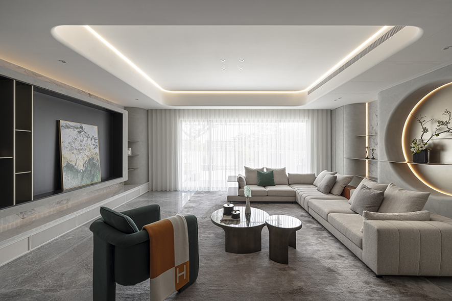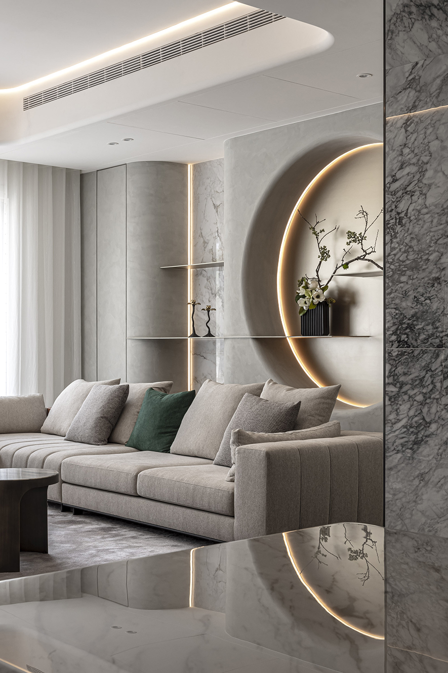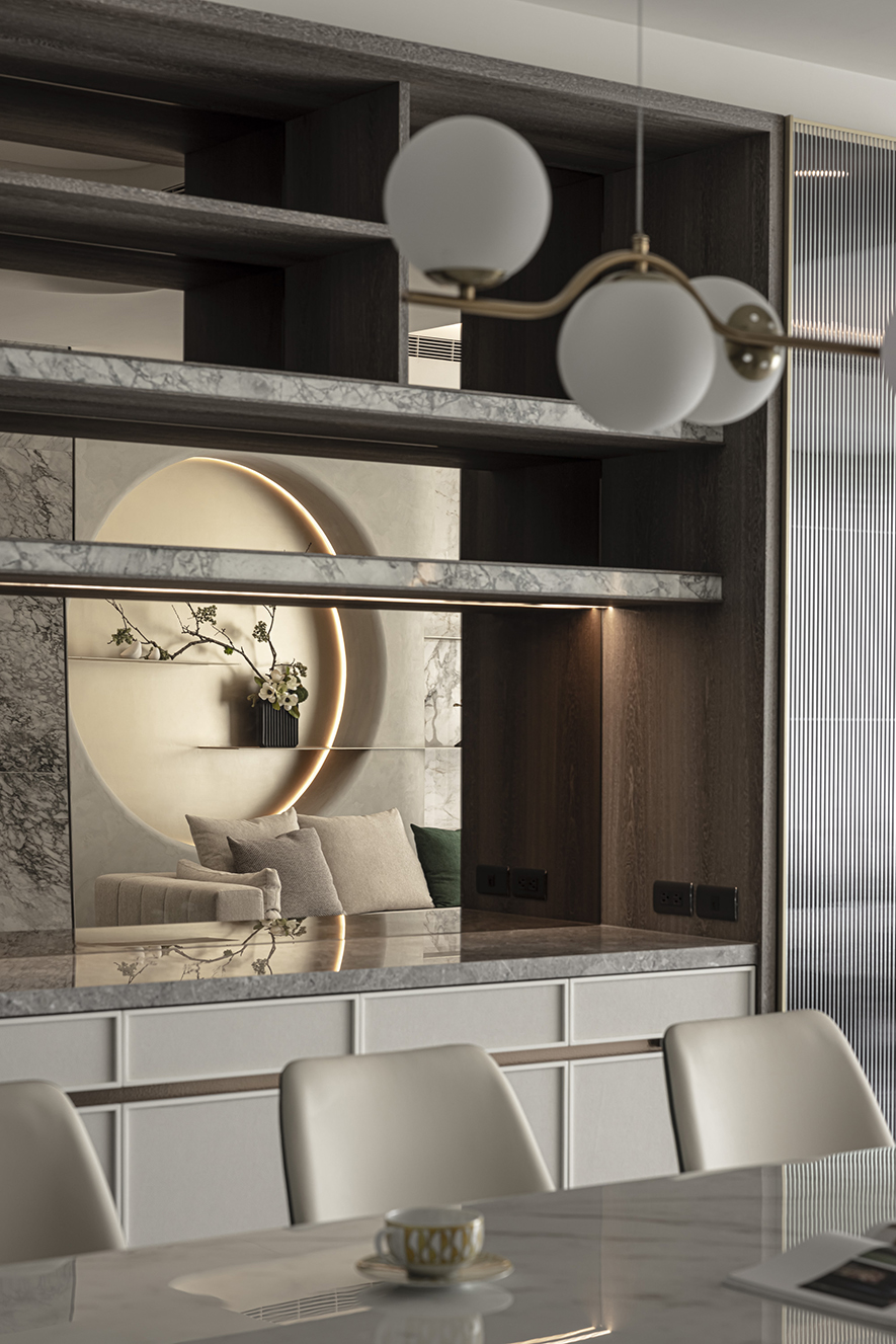圓月、浮雲、自然山光……含蓄的東方古典之美,透過現代的西式裝潢細膩表達,呈現獨具魅力人文風情。靜靜欣賞屋內的軟裝與家飾,便彷彿置身於藝術殿堂,陶冶心靈之餘,更滋養一家深厚無比的親情。