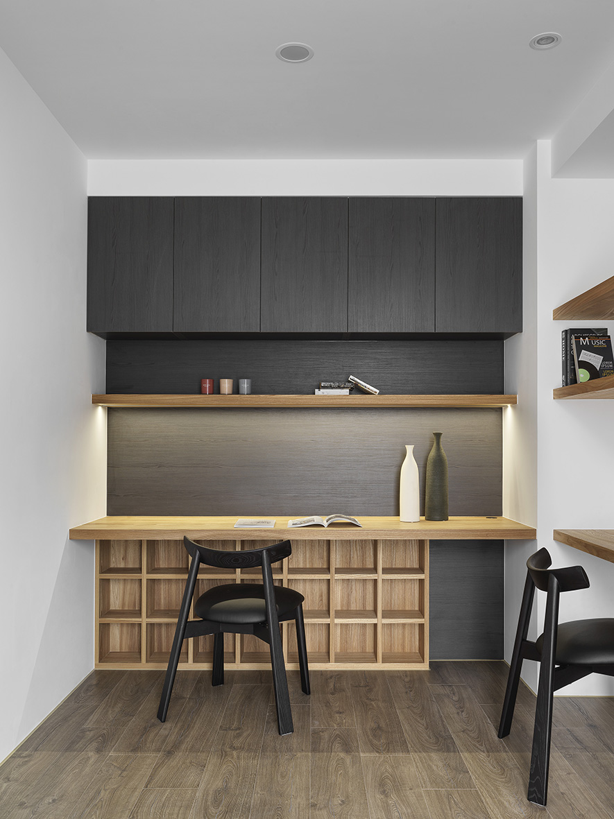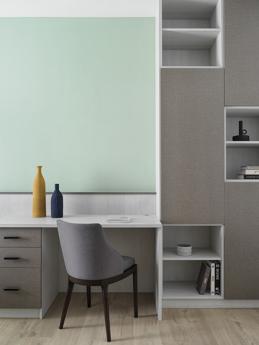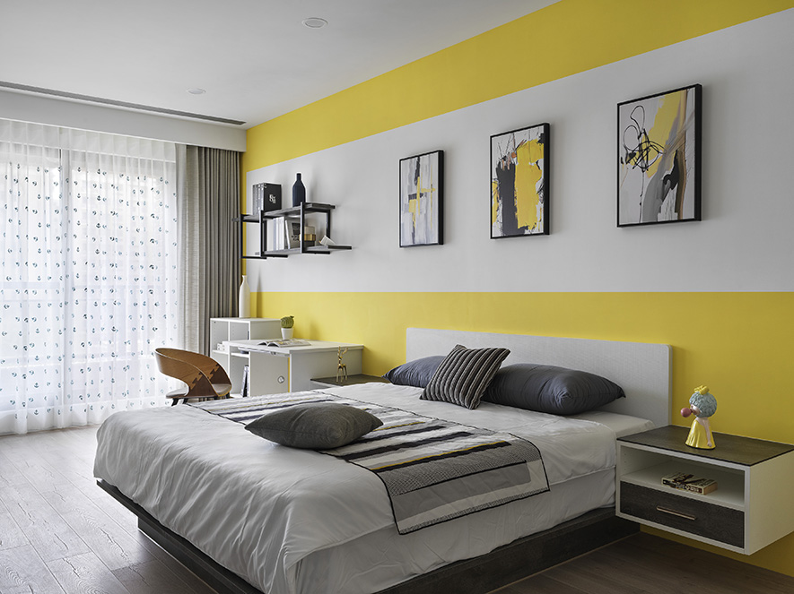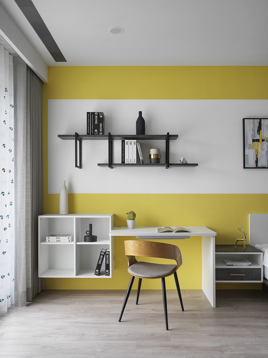 我們以個性十足的顏色為基底,加上精巧家飾和藝術畫作為點綴,打造出裝潢簡約卻不減活潑氣息的家宅。開闊的空間,給予孩子自由嬉戲的歡樂童年,而排放工整的書櫃,以及隨處皆有閱讀區的規劃,則讓一家三口遠離喧囂塵世,投入無涯書海中盡興遨遊。