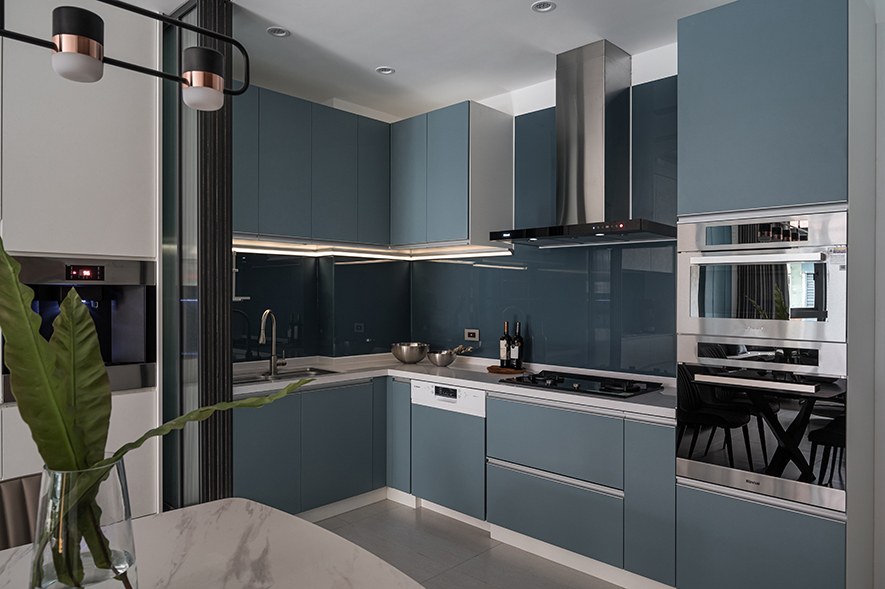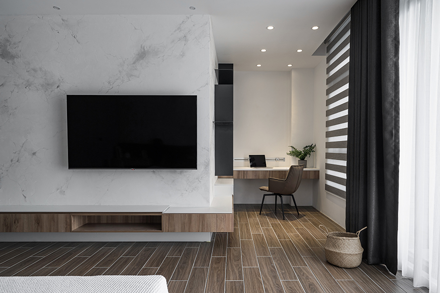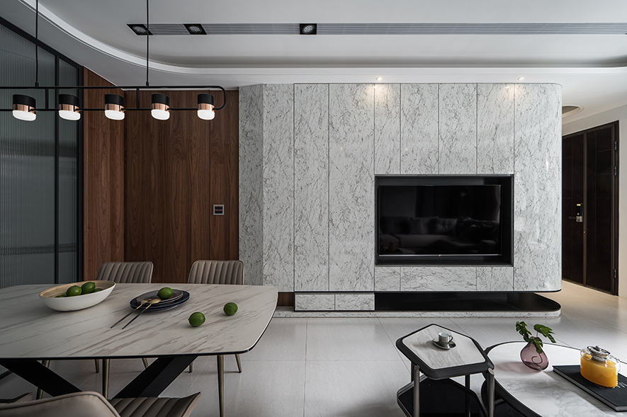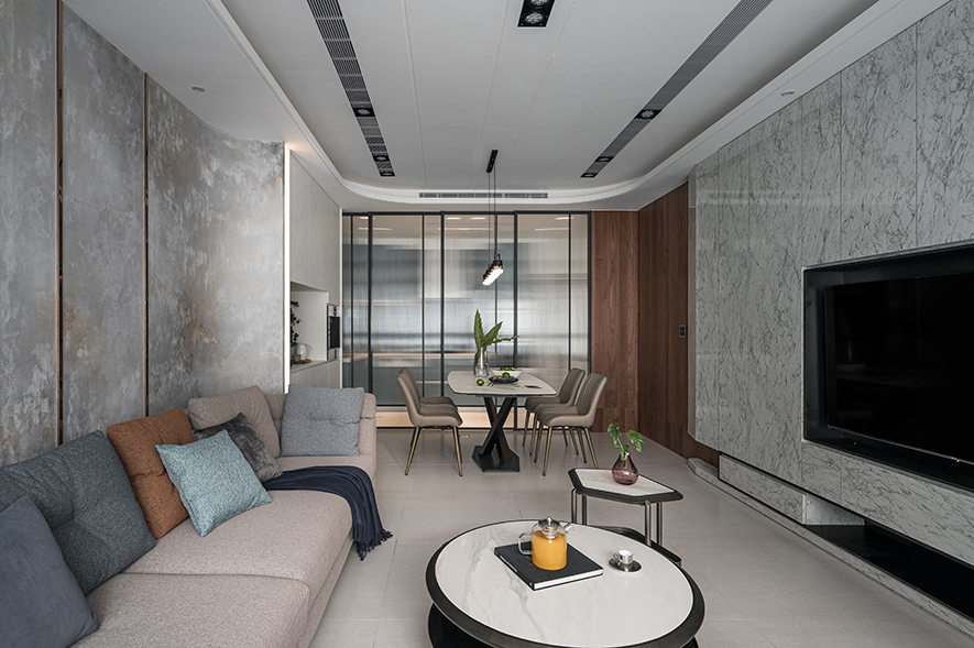 主要建材/ 陶瓷烤漆、訂製繃布、藝術塗料、美耐板、鐵件、塗裝實木皮板、鍍鈦飾條、賽麗石、乳膠漆、訂製鋁滑門、超耐磨木地板、系統櫃