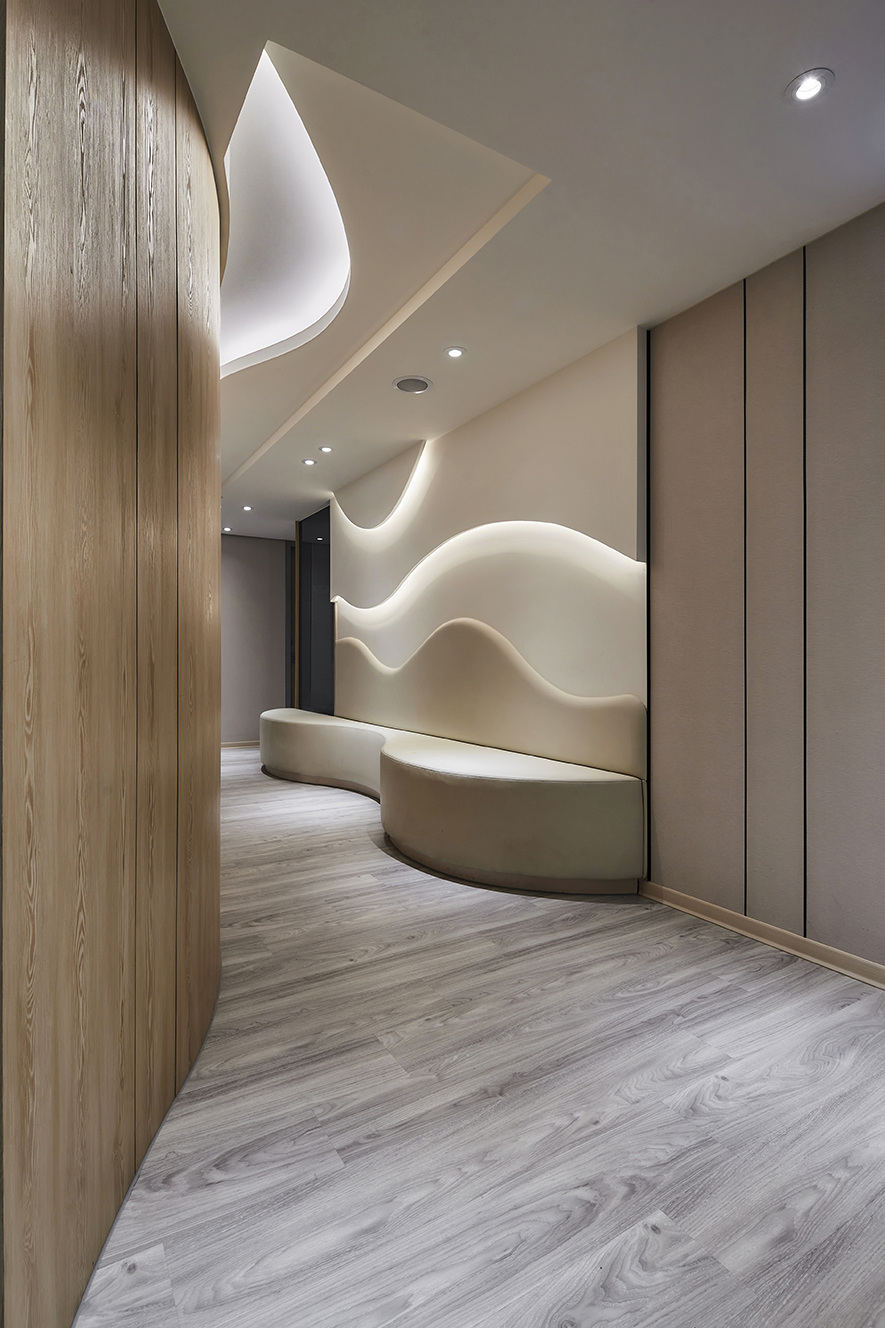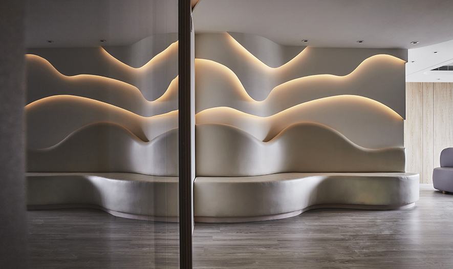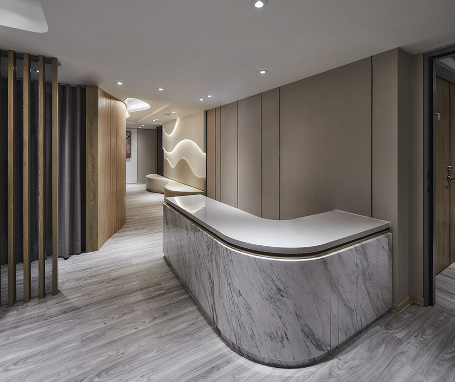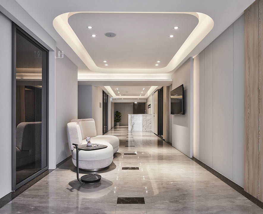 木皮、鍍鈦板、大理石、石塑木地板、壁布、皮革、小冰柱玻璃