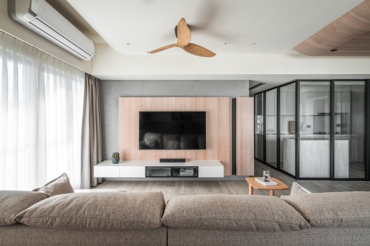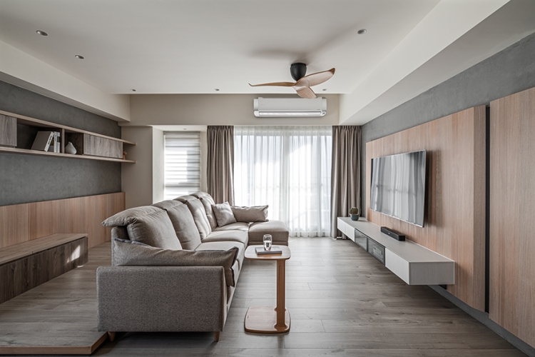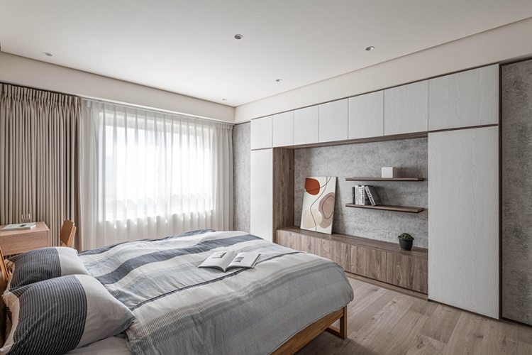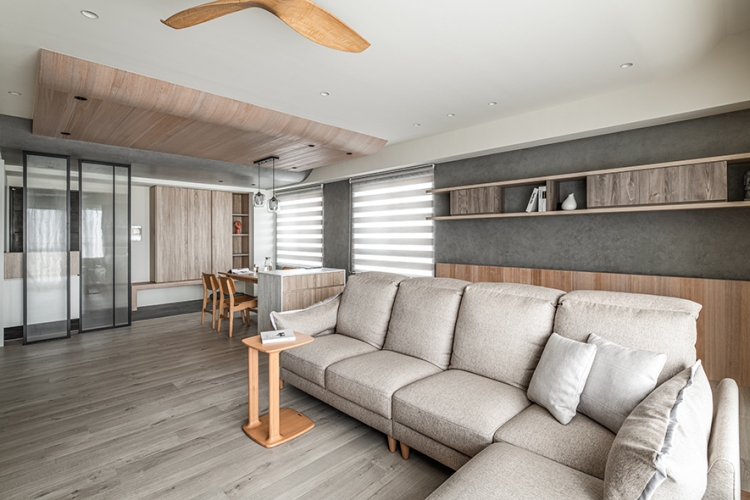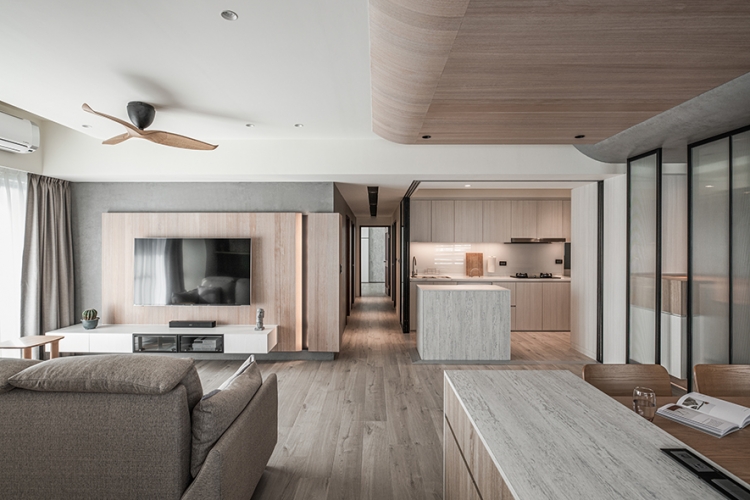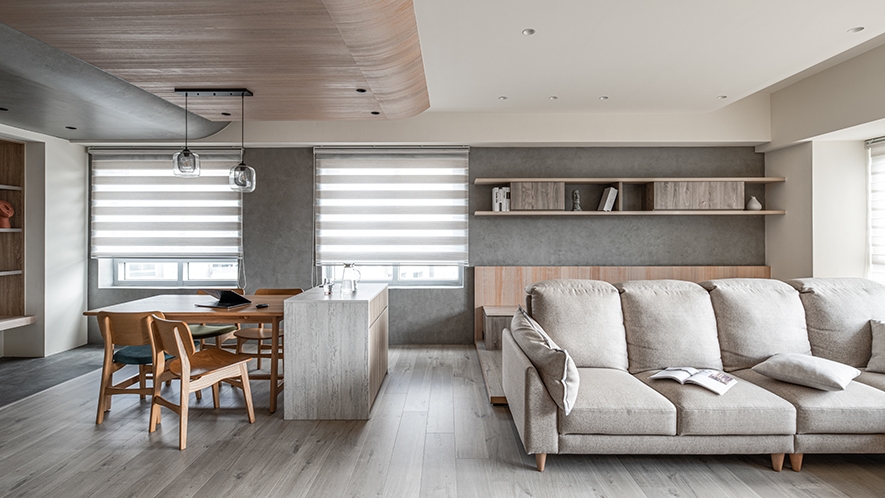 輕撥紗簾,開闊藍空與多變雲景映入眼簾,猶如天上秘境,與之呼應,室內以清晰連貫的視野,銜接各處空間與家人情感,搭配漸次提升的場域高度,期許業主一家共築美好進步的未來,輔以大地色彩與木質紋路點綴畫面,營造舒適淡雅的家宅。