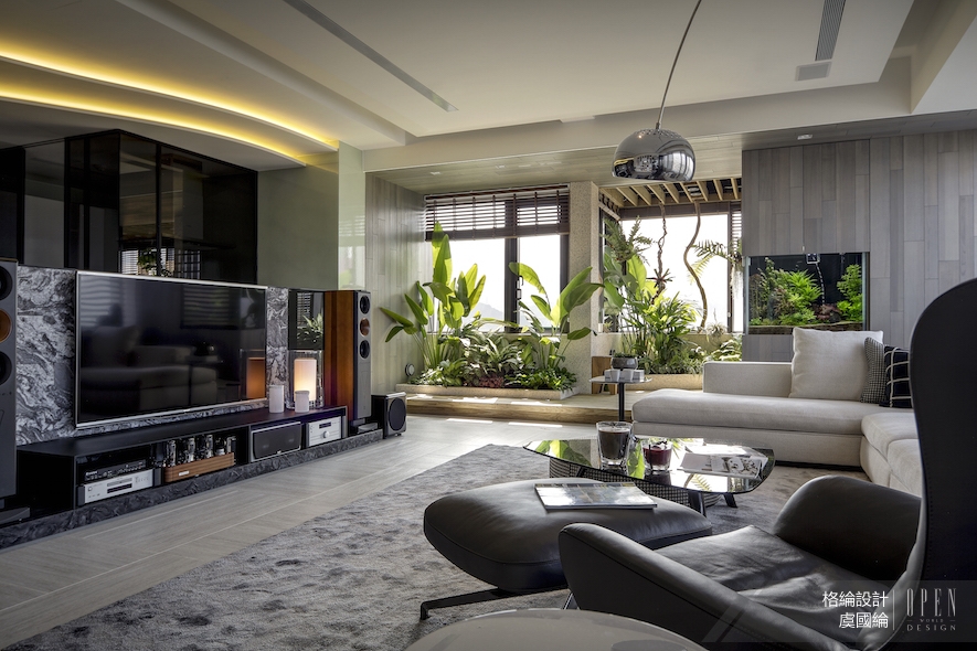 無論是深入鑽研現代建築抑或空間設計的尋道者,皆欲探討如何使人與自然永續共生,格綸設計 虞國綸 設計總監 亦身列其中,極力思索運用空間語彙消弭人與人,以及與自然間隔閡的方式;藉由植生牆、室內植栽、開窗借景等可能,涵構出既滿足人們身心體驗,亦能與環境相容的居住場域;並由此開始, 讓住家空間不再止於「向內停留」的歸處,而能成為「連接外界」的美好取徑。