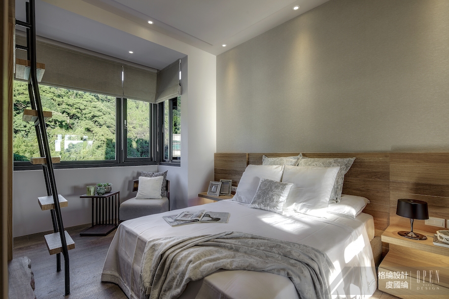 換個角度想,空間能否透過其他種介質來貼近自然?虞總監在《和光沐景》中為我們演示新的途徑——屏棄運用牆線分割場域的既定作法,選用接近木質原貌的建材貫穿公領域;並在滿足日常所需的前提下,妥善收整人造物的突兀線條,採取或內嵌或簡約的線條設計,搭載與量體色系相近的質材,建構出流暢而開闊的視感,拓植宛如大型樹屋般的居住想像,讓人與自然歸返本然的相處狀態。