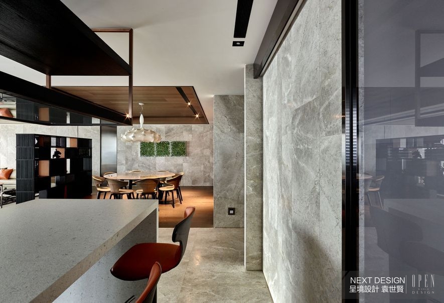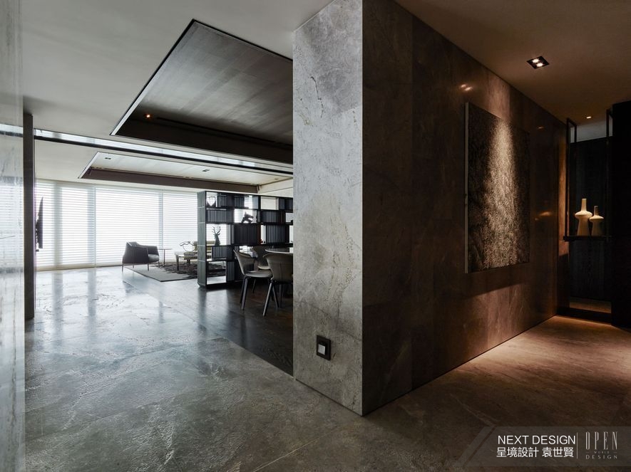 以「窗外的景是最美的畫」為概念出發,NEXT DESIGN 呈境設計 袁世賢 設計總監 考量基地周遭的地理條件後,為這座落於制高點的靜謐宅邸,大幅開闢落地窗,搭配開放的動線設計,形塑綿延流暢的空間感;並透過色澤內斂的天然木石,捕捉光影的細微變化,彷彿以家宅為器,蒐集光影及質材互動的瞬間,進而觸發自然景觀與居住環境的緊密連結,使山海夕日恍如裝幀於室,化為烙印空間的無暇屋景。