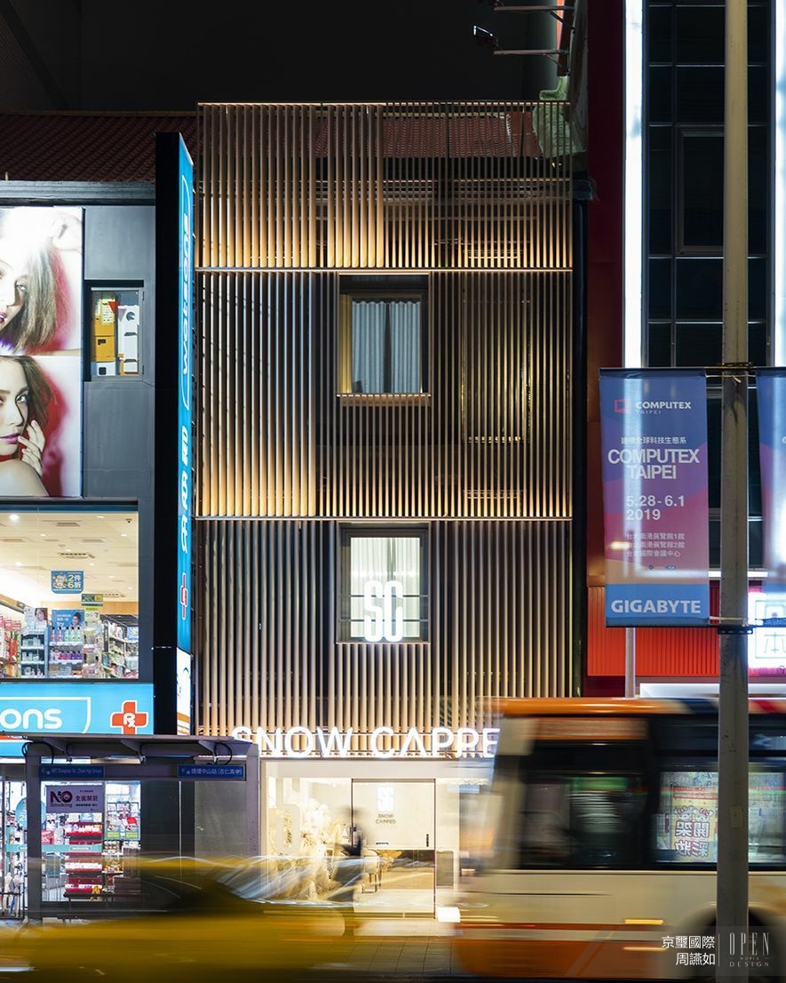 座落於台北精華地帶的 SNOW CAPPED科技美容旗艦館,透過 京璽國際 周彥如 設計總監的藝術巧勁,將這座蘊含光輝的老宅樓棟再度翻新;歷經約莫一年的改裝程序,京璽團隊於外,強化量體結構並重塑建物皮質,運用纖細金屬與明亮燈光,重現品牌俐落優雅的時尚性格;於內則大方鋪敘純淨色調,並解除傳統僵固隔間,為各機能區塊打造無限延展的場域關係;其間綿延滿天富麗光影,讓每位貴賓所到之處皆飽滿光采,使之再一次地宛如初生,尋回蘊藏體內的喜悅與震撼!