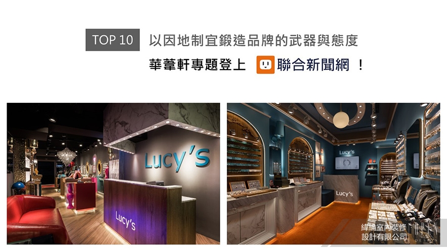 考量此案為飾品零售空間,華總監定「低調奢華」為主軸,融合歐式雕花天花板與現代精品陳列手法,佐以深藍綠、灰白主調,營造沉穩內斂的店面情境,間或綴入橘紅色彩描繪視覺亮點,令《Eclat Corridor》在繁華商圈的熱鬧街廓中脫穎而出,絕妙設計受聯合新聞網上刊支持!