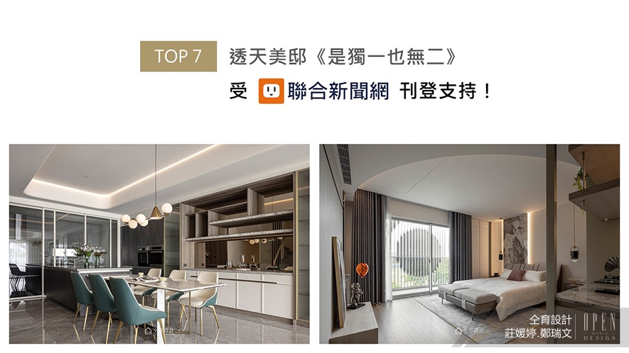 考慮本案為三代同堂的百坪透天宅邸,莊總監與鄭總監以東方哲思融匯現代語匯,藉石材光澤、木質霧感疊序畫面層次,佐搭空間中的利落線條及柔和曲面,鋪陳沈穩細膩的生活氛圍,並匯入大地色調揉合綠意和暖橘軟裝,引入天然美感跟人文情感。《是獨一也無二》勾勒出讓三代和諧共居的溫潤家景,獲聯合新聞網刊登宣傳!