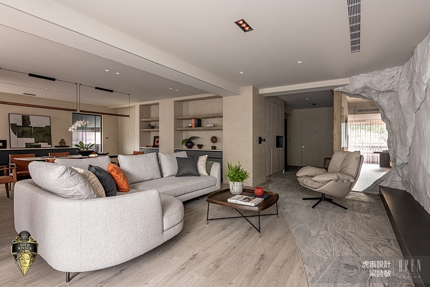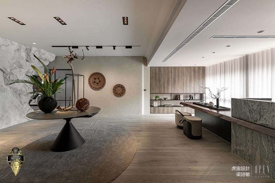 美國MUSE Design Awards致力於發掘全球設計繆思,涵蓋建築、室內、時尚等領域。2026年共吸引來自124國、超過十萬件作品參賽,由200多位專業評審嚴格遴選,為國際設計界的重要指標。虎宙設計 設計總監 梁詩敏 深入探究屋主二人的喜好特質,藉由雙客廳的格局設計,規劃一處飄蘊樸實禪意、一處鮮明吸睛的迥異公領域,分別回應男女主人對沉心自然、創新藝術的品味追求,同時於機能層面滿足各自的商業會談與社交茶敘需求;複合型住宅《岩境‧橙曦》不僅貼合居者們的生活習慣,亦對應本賽事講究的「創意巧思及創作深度」核心,順利斬獲「金獎」出色佳績!