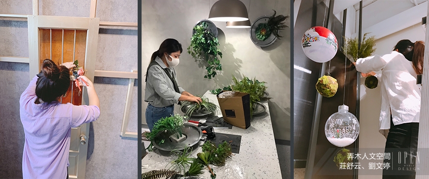 如同情境需要緊密搭配的硬體及軟件方能完備,一個設計團隊亦是如此。弄木品牌由Joye進行空間規劃,及其後延伸出的各式平面設計,Celine則負責管理軟裝部門。她笑稱自己是「無時無刻都在找東西。」找什麼東西呢?找任何能透過手作,化為裝置藝品的材料,除此具體物件之外,也找尋夥伴間的合作默契,毫無主管架勢的她,平時便擔任溝通、調和整體氣氛的核心人物;合作無間的兩人,亦潛移默化地養成品牌內在的健全運作體質,進而造就令所有客戶信賴的專業顧問形象。