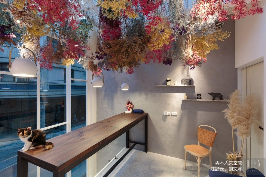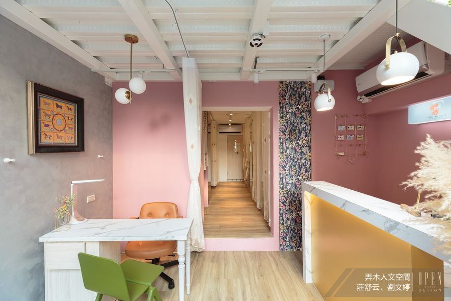 (圖)弄木人文空間 商空作品《花甲咖啡美甲店》。待著娃娃屋般精緻可愛的通透外觀,空間運用粉嫩的基底色系輔以花藝裝飾,為來客提供舒心美好的放鬆環境。
