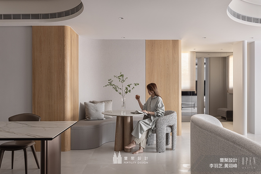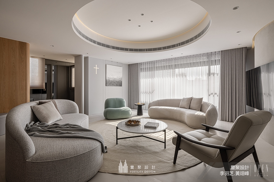 客廳&午茶區——流弧曲面開展綿延觀感 圓柔景緻靜述家族美滿
