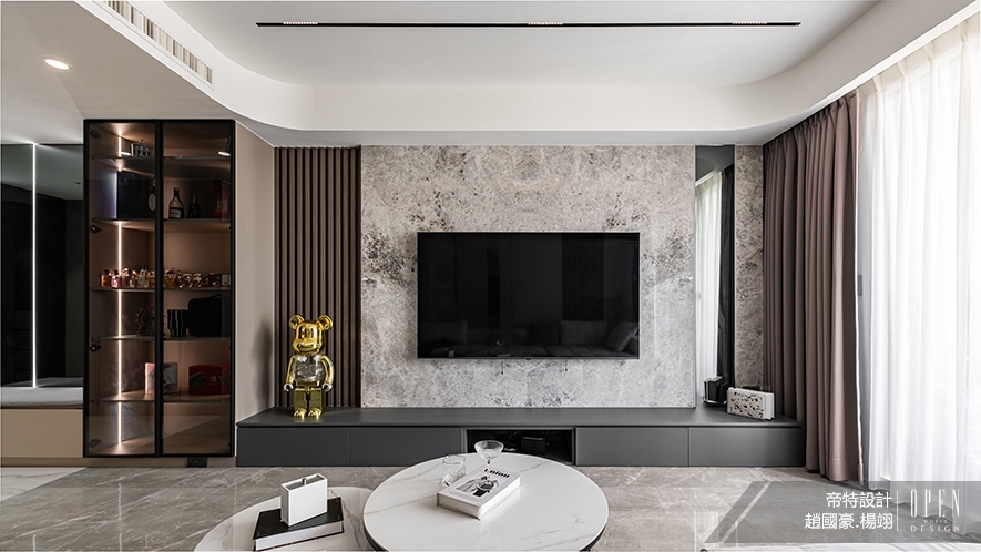 實際作業流程中,兩位總監皆會切實依循該設計核心分工合作。先由趙國豪總監洽談、接案後,從自身接觸異業專家的眾多經驗中凝練發想,給予團隊規劃的大方向;隨後交由楊翊總監統籌顧客的詳細需求,梳理業主作息、興趣和家庭關係,並經由設計手法擘劃便利收納、順暢動線、安全細節,最後將設計師平日對美學及實用性的高度追求,具體化為空間中恰到好處的視覺比例、材質選配,讓居者感受生活因設計改善,同時使設計真正成為美好日常的一部分。