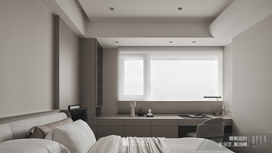 床頭櫃旁柔和燈光悄然亮起,輝映著潔白床品,如月色灑落,為空間披上一層夢幻薄紗。每一處細節皆精緻雕琢,不論是蘊藏實用智慧的書桌,或整體房間淡雅的灰白色調,皆牽引內心回歸平和,將塵世的疲憊輕柔安放,在這片刻寧靜中,尋回久違的安然與自在。