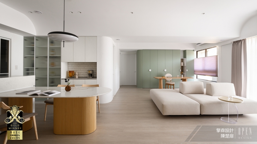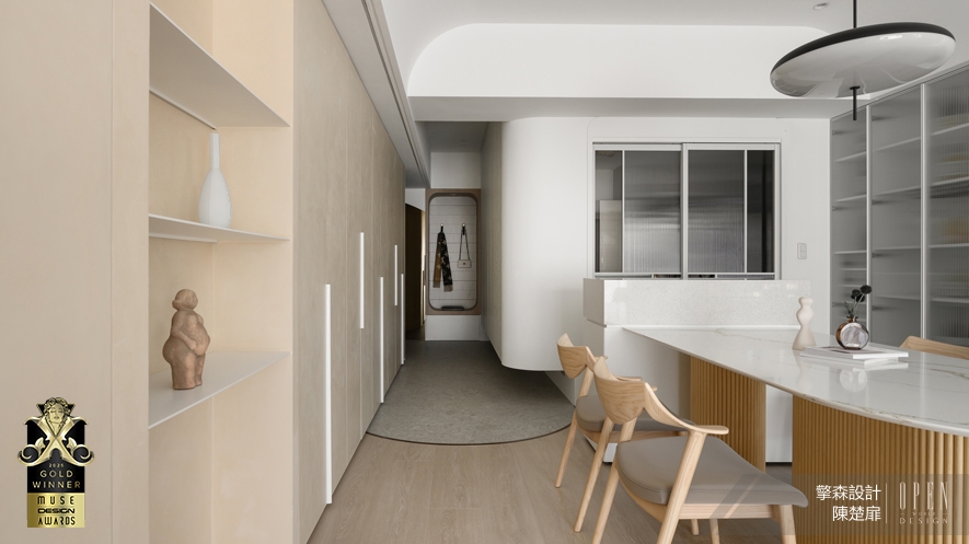 美國 MUSE Design Awards致力於發掘全球設計繆思,涵蓋建築、室內、時尚等領域。2025年共吸引來自122國、超過十萬件作品參賽,由200多位專業評審嚴格遴選,為國際設計界的重要指標。擎森設計 設計總監 陳楚扉 呼應住者對溫馨居所的嚮往,透過圓弧曲線消弭空間結構的量體沉重感,搭配大地色系與素雅淨白,營造雲朵飄浮般的輕盈詩意,家宅《雲暮》以其跳脫傳統格局、將生活哲學與空間美學完美融合的創新手法,充分體現該獎項推崇的「發掘兼具創新精神與人文關懷的設計」精神,榮獲本屆賽事「金獎」殊榮!