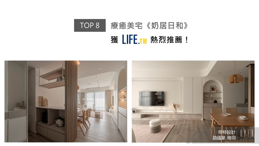 趙國豪、楊翊總監巧妙調配空間色彩比例,奠下大面積的奶茶色作為基底,搭配少量柔軟內斂的大地色系,以深淺各異的暖色均勻交織,描繪一派色調和諧的優美光景,其間點綴實木格柵屏風、木質家具與藤編椅的天然材質,豐富空間層次感之餘,也進一步彰顯質樸溫馨的質感,為家園注入獨一無二的和煦溫度,治癒溫柔家園《奶居日和》刊載於Life生活網版面!