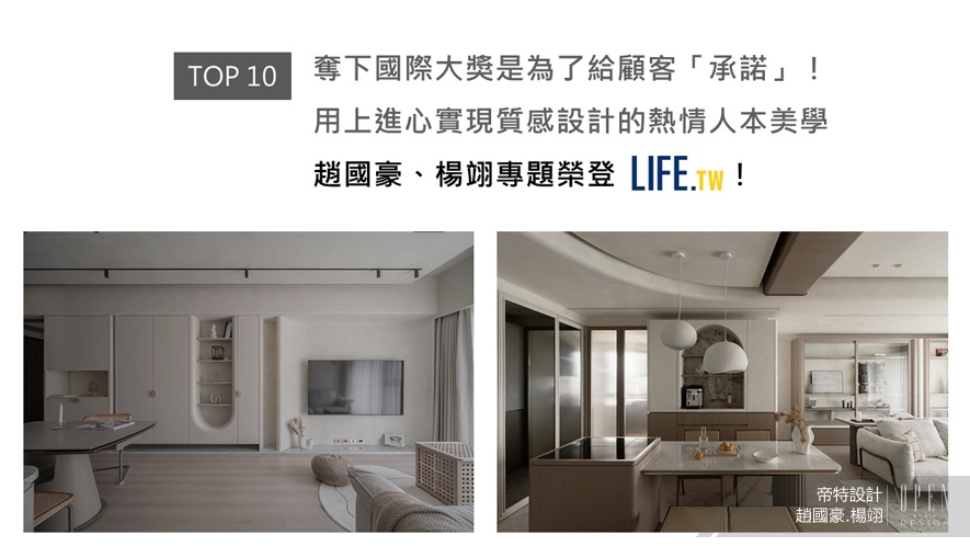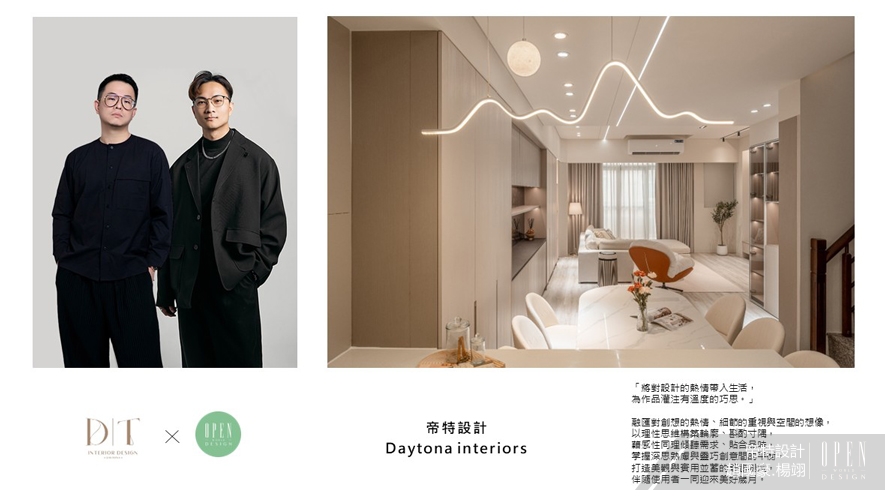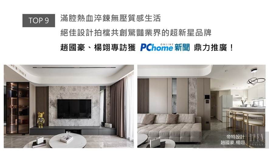 帝特設計的趙國豪、楊翊總監,攜手將公司從創建初期的青澀,短短四年便滋養為現今茁壯煥光、廣受好評的傑出設計品牌。兩人以沉穩的個性,加之跳脫傳統框架的嶄新思維,腳踏實地積累專業經驗及優良口碑,只為讓帝特獨有的溫暖設計,成為每位使用者改善生活的無形助力,創造融入業主美學及人文溫度的專屬空間,內容豐富的專訪受PChome上刊推薦!