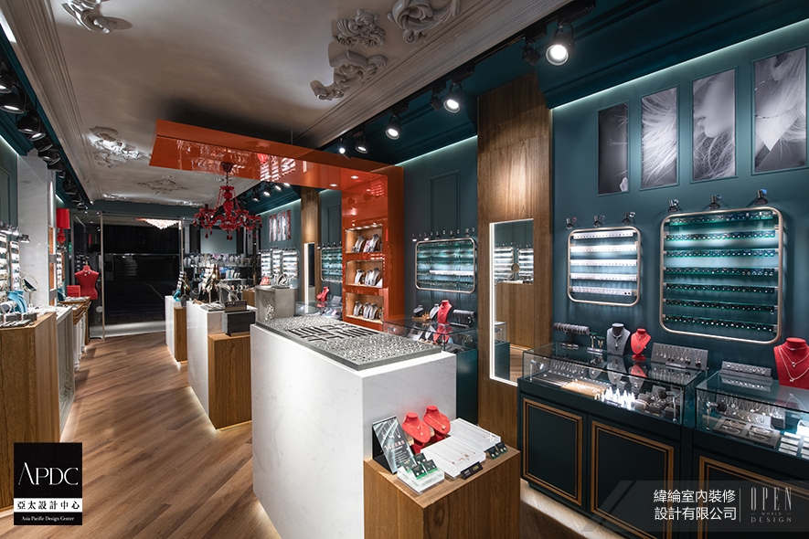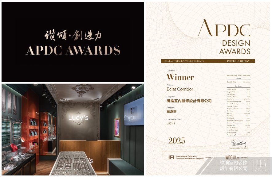 APDC亞太設計中心是室內設計聯合國組織IFI(國際室內建築師設計師團體聯盟)的全球成員,由該組織發起的APDC AWARDS,自2010年起每年舉行一次,今年已來到第16屆,依舊持續秉持「讚頌設計之創造力」的核心,致力將創新的優秀作品推廣至國際舞臺。緯綸設計 設計總監 華葦軒 以深邃藍綠作為空間基底,將飾品店轉化為一座光影劇場,於狹長格局中巧妙植入橘紅烤漆玻璃中島,以色彩對比與材質層次打破動線侷限,更運用雕花線板與水晶燈飾,串聯入口至收銀區的視覺軸線,使每件飾品皆能在專屬光域中綻放璀璨光芒,讓商業空間兼具精品儀式感與親民互動性,作品《Eclat Corridor》以其創新手法與美學實踐,完美契合大賽核心理念,榮獲2025年度賽事的「Winner」殊榮!