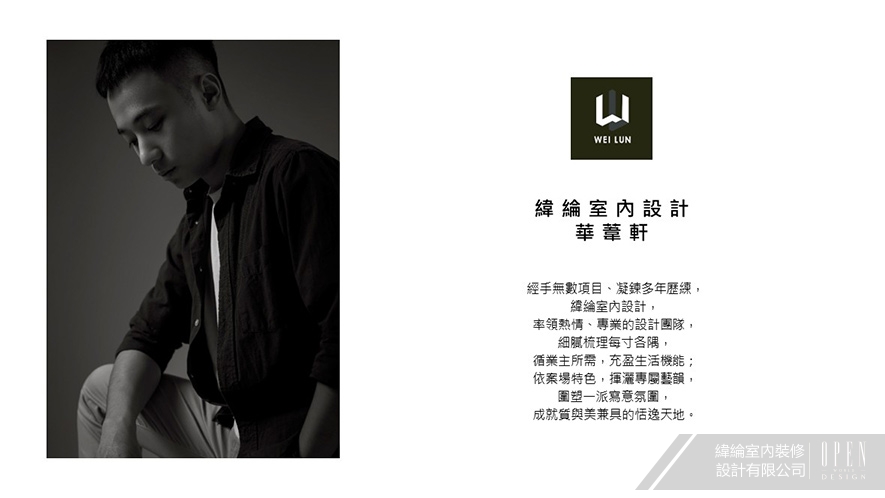 於從事景觀設計的父親自小薰陶之下,不只孕育出對設計「化想像為現實」的嚮往,緯綸設計 設計總監 華葦軒 更將這份初心轉作自身獨到美學的種子,在踏入室內設計領域後,透過以人為本的真摯同理心、以及敏銳的洞察力,予以每位業主滿盈美感及實用機能的理想場域;接下來就跟隨OPEN團隊的腳步,一同見證2025至2026年間,華總監領率緯綸團隊所刻畫出的種種優異表現吧!