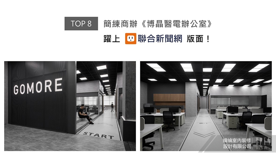 緯綸設計巧妙應用極簡風格的俐落畫面,於辦公場域中遍布深邃碳黑,打造沉心專注的工作氛圍,搭配灰階地坪的素淨紋理,平衡深色調帶來的厚重感,令使用者作業時更能放鬆身心,兼具效率、秩序的辦公場所《博晶醫電辦公室》,獲刊聯合新聞網!