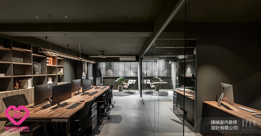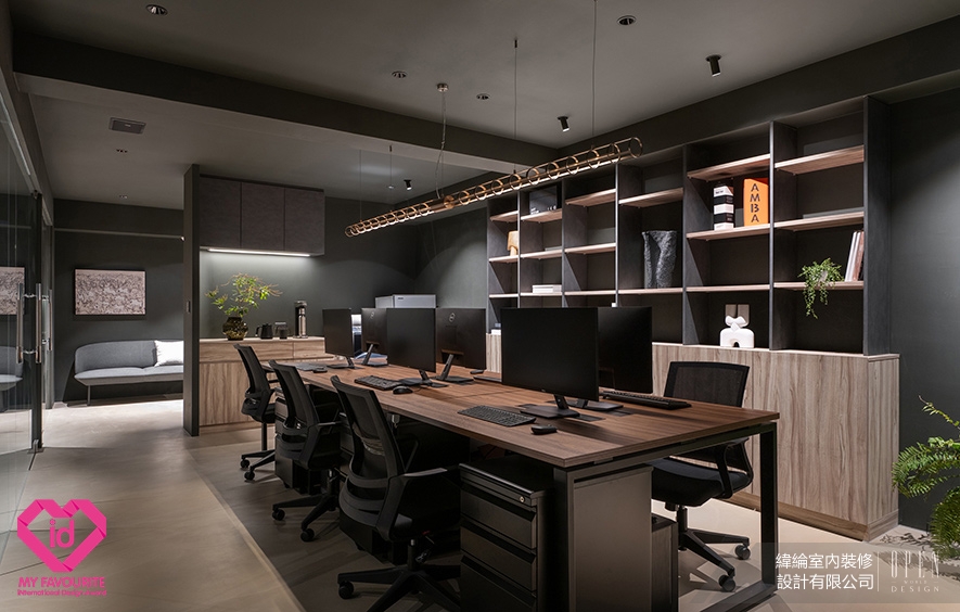 My Favourite International Design Award(MFID)作為馬來西亞首個且唯一的國際設計獎項,2026年由橫跨11國16位專業評審,以含括設計理念、美學表現力、功能性、永續實踐、文化脈絡等五大標準嚴格遴選,致力於發掘並推廣兼具精湛工藝與前瞻創意的優秀作品。為傳遞「設計即溝通」的品牌信念,緯綸設計 設計總監 華葦軒 於自身辦公空間《墨隱》中,以深沉墨色為基底,巧妙混搭溫潤木質與冷冽金屬,鋪展內斂而有光的沉穩氛圍;格局上採前、中、後三段式佈局,搭配玻璃隔間導引日光深入室內,兼顧通透視野與動線秩序,打造專注與對話並行的理想工作場域,精準呼應賽事對「設計創新與空間機能整合」的評選標準,成功摘下2026 MFID Awards商業類別「Winner」榮耀!