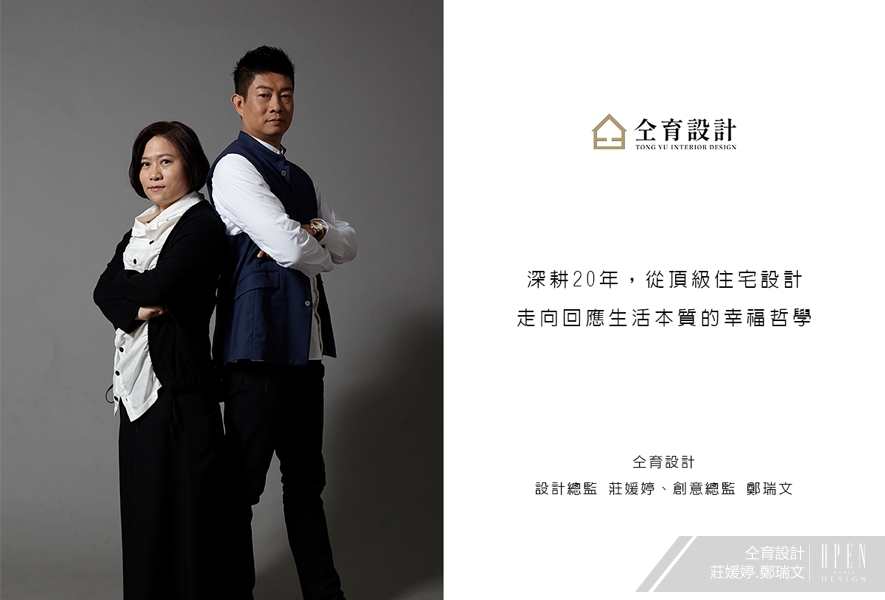 走過二十年的歷程,對仝育設計而言,不僅是客戶深厚信任的證明,也是團隊中上自領導者、下至設計師,每位人員各司其職的專業體現。仝育設計的創辦人──莊媛婷總監與鄭瑞文總監,多年來懷抱著「透過設計,療癒人心、創造幸福」的暖心理念,將生活中汲取的美好體驗,篆刻於客戶們的理想空間之中。團隊以擅長的「形、色、質、空、光」為設計語彙,將自然元素轉化為空間層次和放鬆氛圍,歷年作品屢獲國際設計大獎肯定。