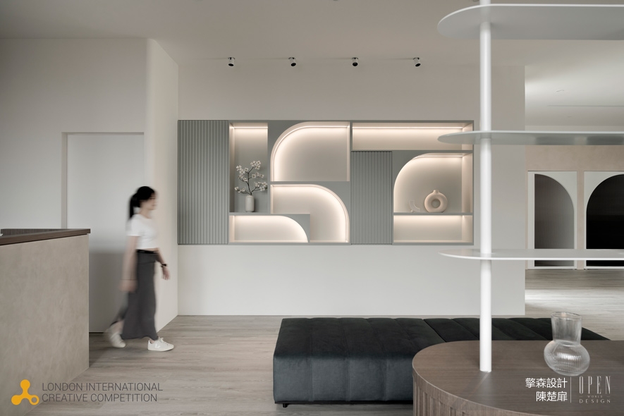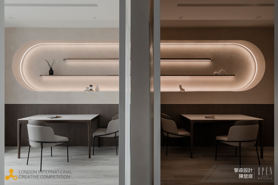 擎森設計 設計總監 陳楚扉 此次以母嬰攝影品牌空間《時序》參賽,從孕育生命的意象汲取靈感,以流動曲線串聯場域、大地色系鋪陳溫暖基調,並搭配特殊塗料和實木格柵等環保建材,在細膩的光影層次中,將母愛的包覆感轉譯為身歷其境的感官敘事。從入口延伸至洽談區,每處轉折皆以弧面柔化處理,引導來訪者安心遊走其間,卸下緊繃情緒,沉浸於靜謐而充滿生機的氛圍,作品理念與大賽核心精神高度契合,榮獲本屆「shortlist」殊榮!