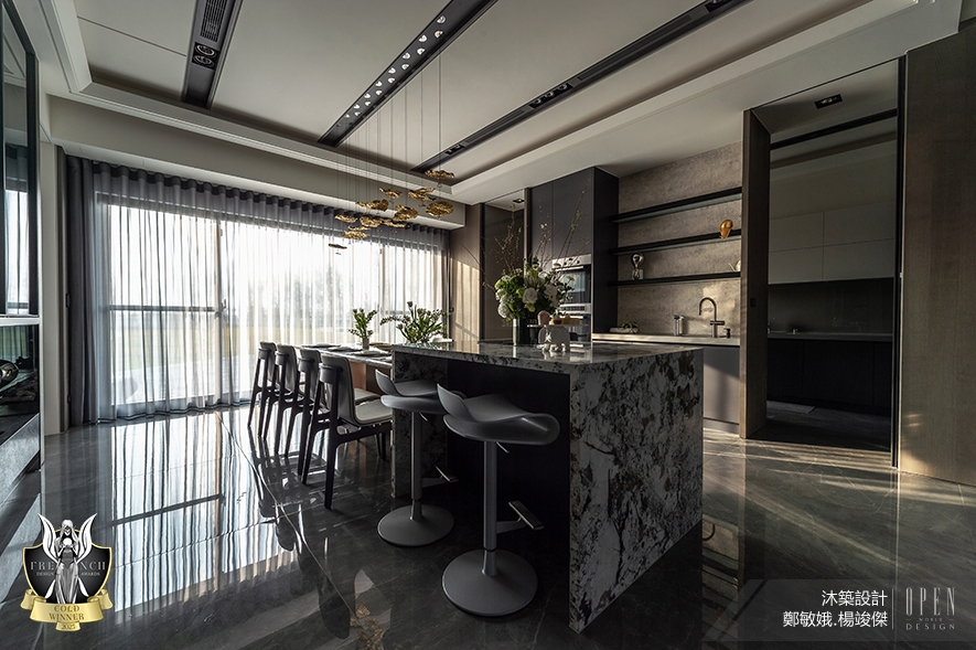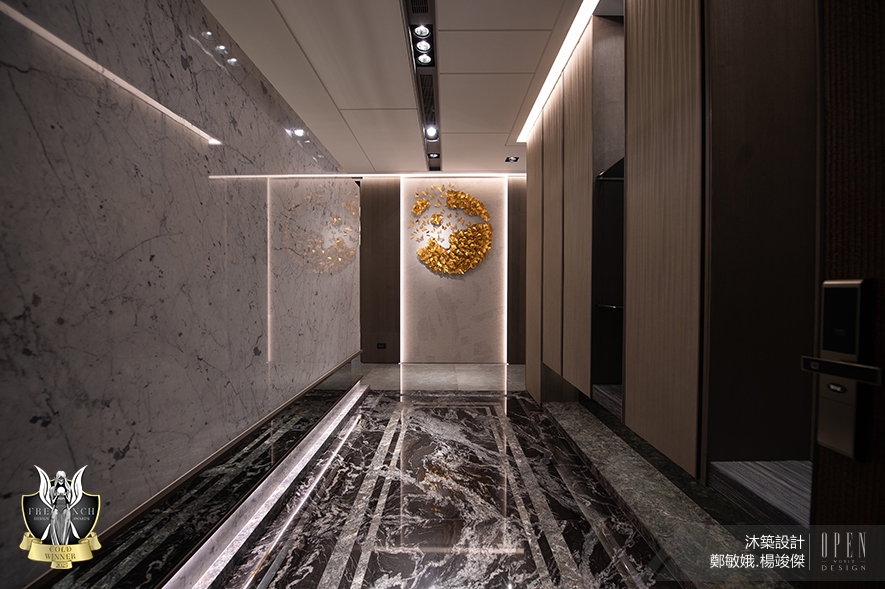 French Design Awards由歷史悠久的國際獎項協會International Awards Associates(IAA)主辦,旨在支持室內、建築、產品、包裝、時尚和景觀設計領域中,勇於創新、突破界限的非凡設計師,並透過表彰融匯創造力和美學功能、可持續性的雋永作品,鼓勵所有創作者為設計領域注入嶄新生命。沐築設計 設計總監 鄭敏娥、楊竣傑 於三代同堂度假宅《雲栖海映》中,以一樓玄關、二樓梯廳為中軸線,對稱劃分公私領域,清楚區隔主客動線,同時藉由開放式公區及全套房配置,回應屋主招待親友的社交需求;其中一樓多功能次臥搭載掀床、臥榻與隱藏式滑桌,既可供多人通鋪留宿,亦能作為窗畔品茗觀景的起居角落。美學鋪陳層面,玄關處金色蝴蝶端景隱喻家族凝聚和擴展,搭配滑門飛鳥芒草、床頭花卉浮雕與魚群洄游等自然語彙,引領戶外綠意悄然滲入屋內;長遠考量上,設計師揀選耐候金屬、低甲醛綠建材及無障礙地坪,結合一、二樓雙主臥規劃,妥善構築屋主退休後安全無毒、行動無礙的宜居場景。細膩呼應使用者情感與實用所需的雋永之作,高度契合賽事對「創意、功能性與長遠影響」的評選要求,獲得本屆French Design Awards「金獎」肯定,使品牌魅力綻放世界光彩!